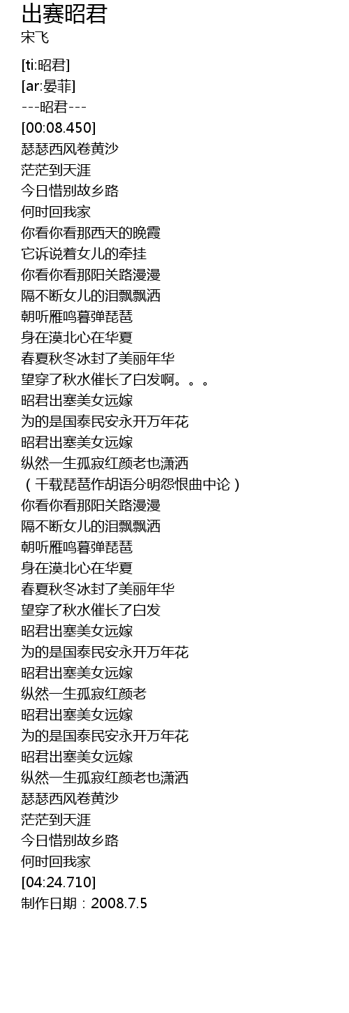 | [03:20.351] | 昭君出塞美女远嫁 |