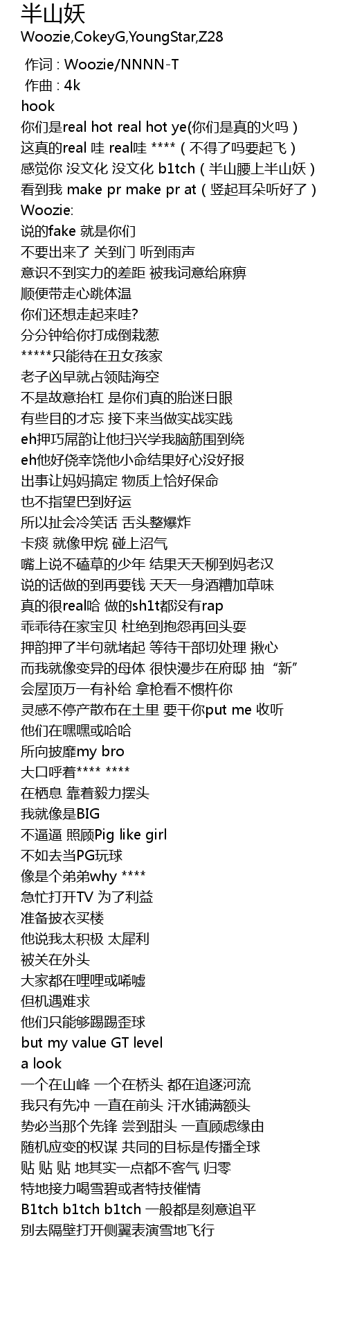 | [02:22.340] | B1tch b1tch b1tch yì bān dōu shì kè yì zhuī píng |