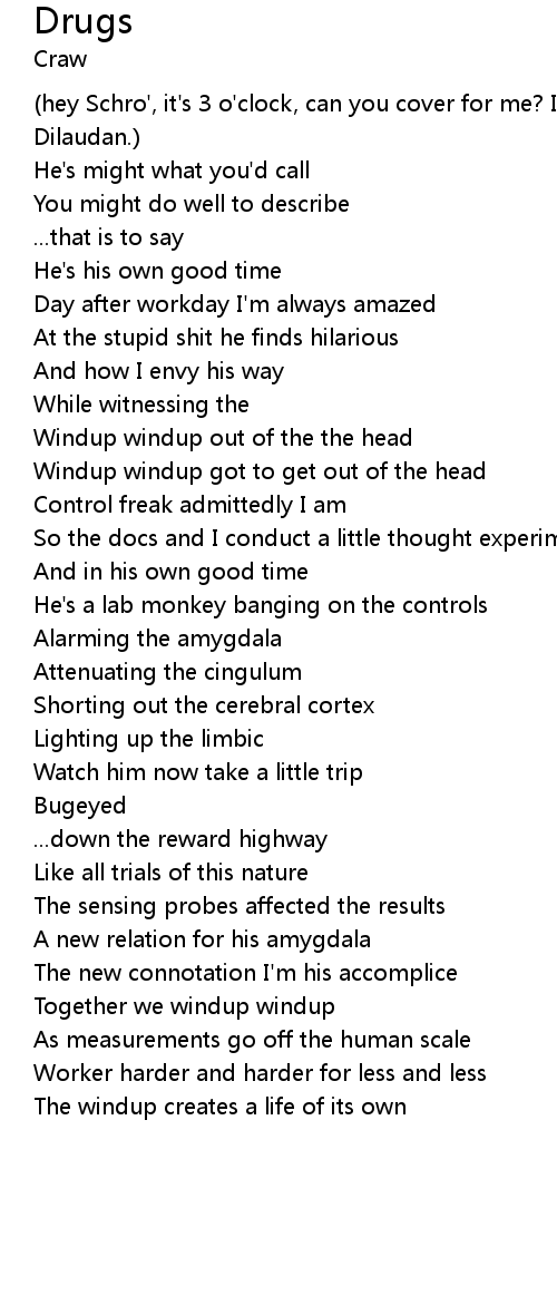 (hey Schro', it's 3 o'clock, can you cover for me? I got to go and get the Dilaudan.) |