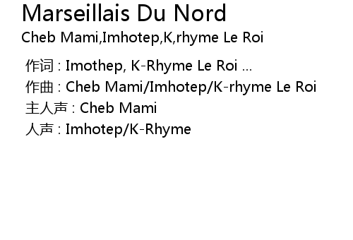 | [00:00.000] | 作曲 : Cheb Mami/Imhotep/K-rhyme Le Roi |