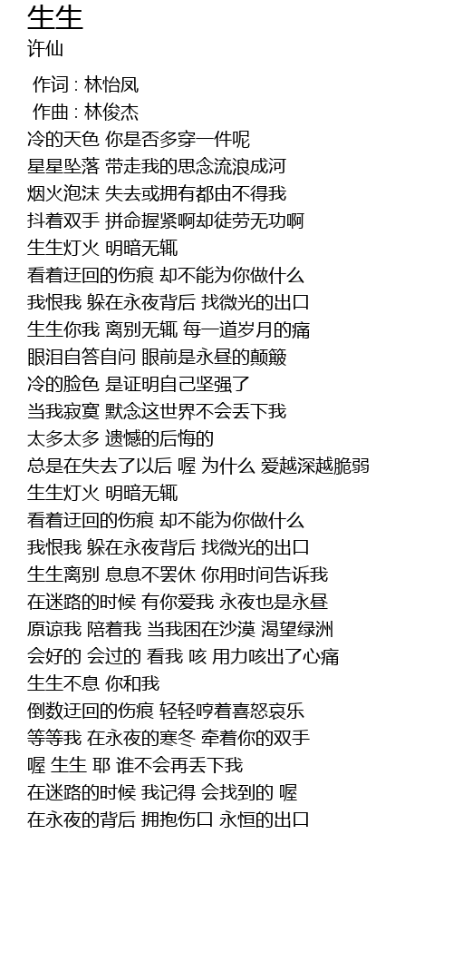 | [03:00.379] | shēng shēng bù xī nǐ hé wǒ |