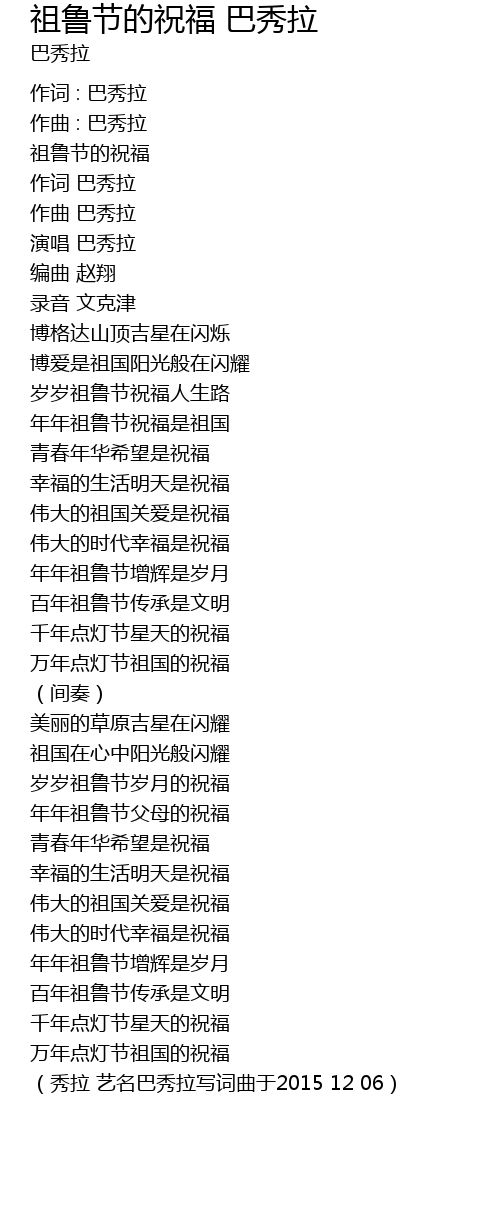 | (秀拉 艺名巴秀拉写词曲于2015 12 06) |