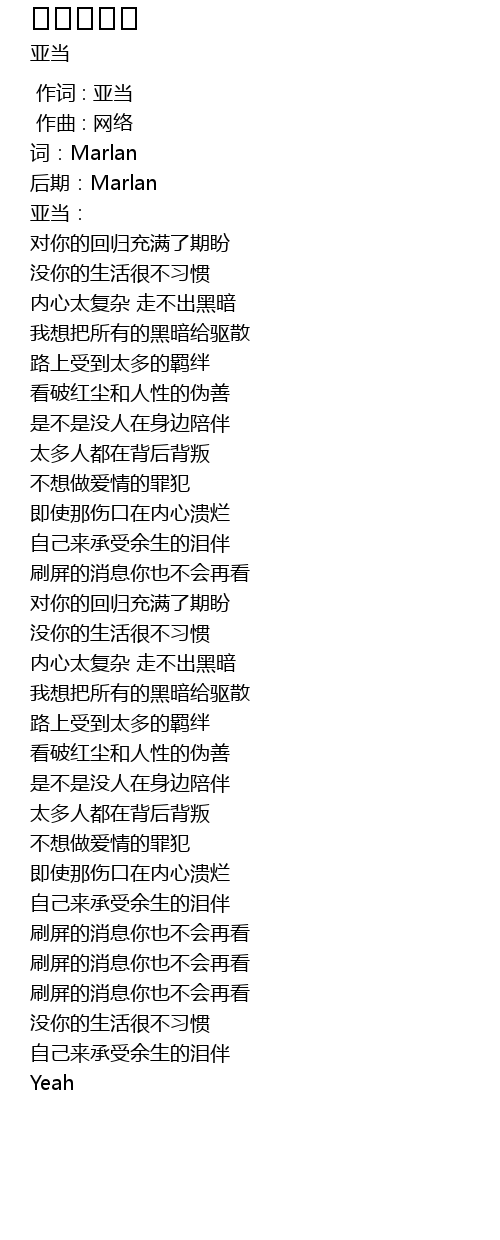 | [00:14.188] | 内心太复杂 走不出黑暗 |