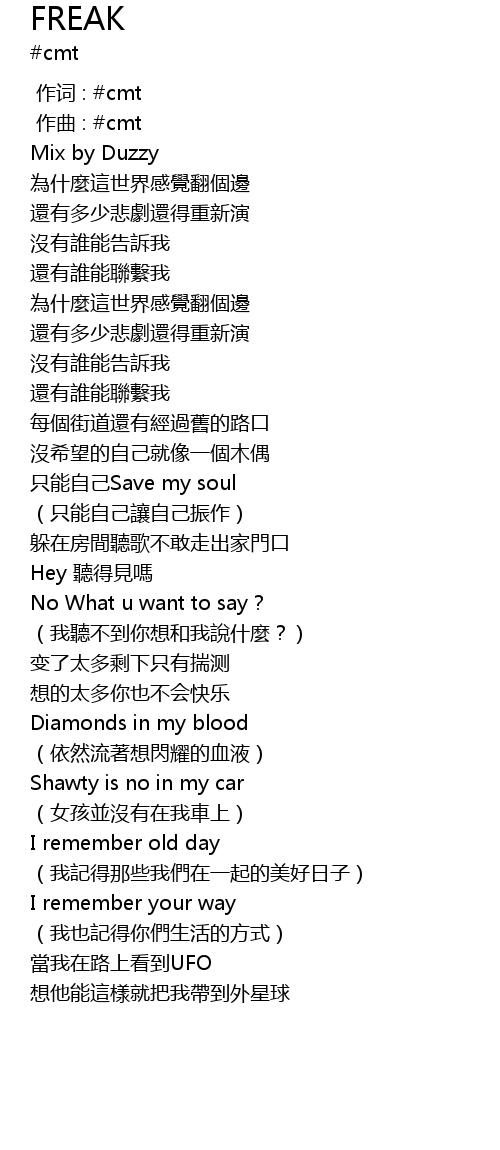 | [00:00.000] | 作词 : #cmt |