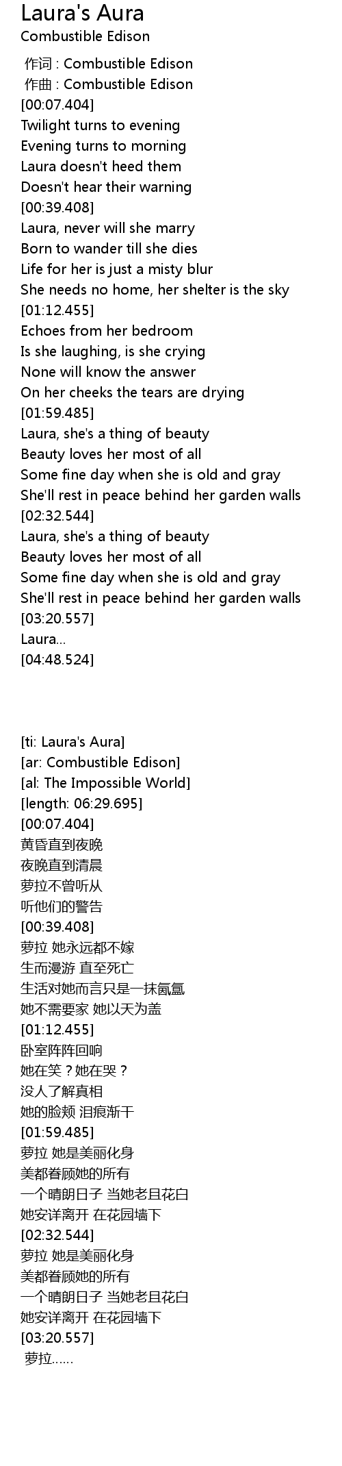 | [00:00.000] | 作词 : Combustible Edison |
