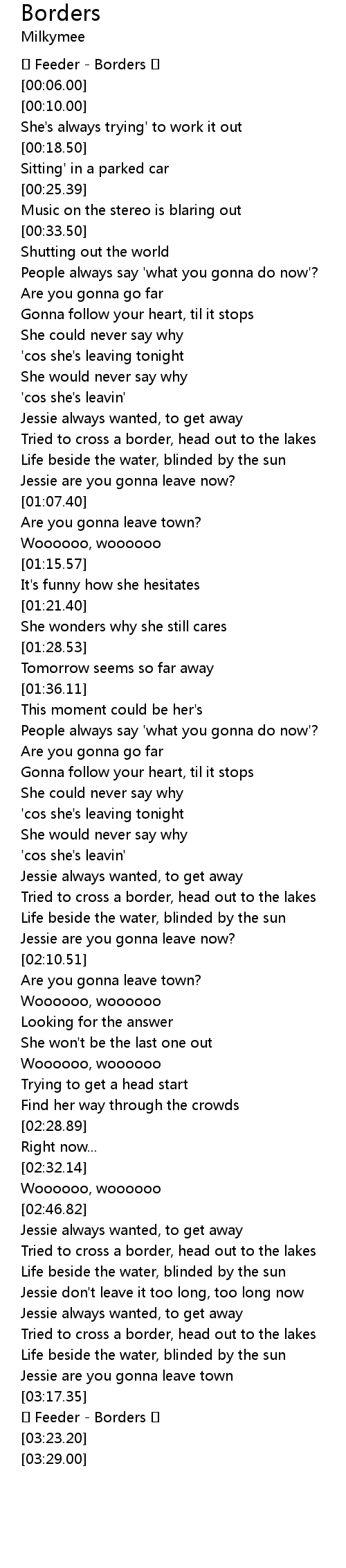 | [03:19.65] | ❤ Feeder - Borders ❤ |
