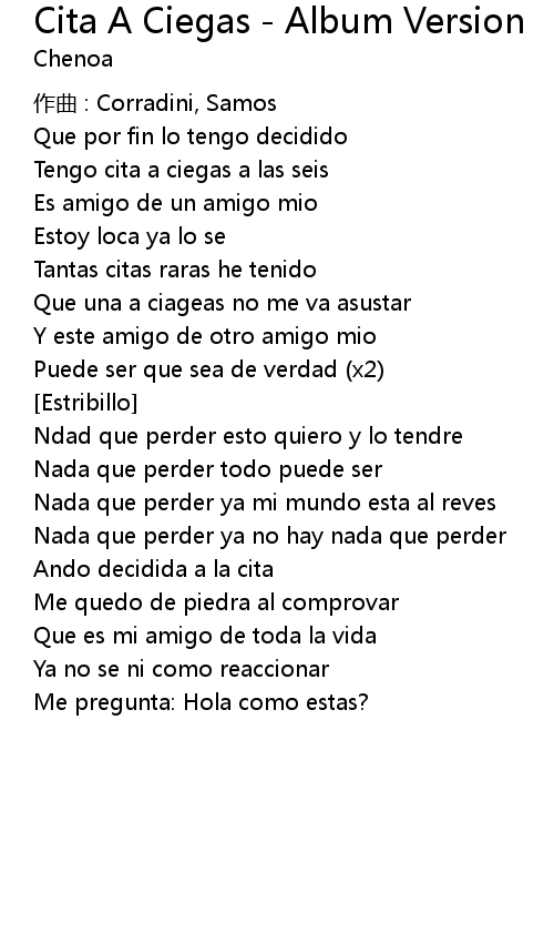 | Song | Cita A Ciegas - Album Version |