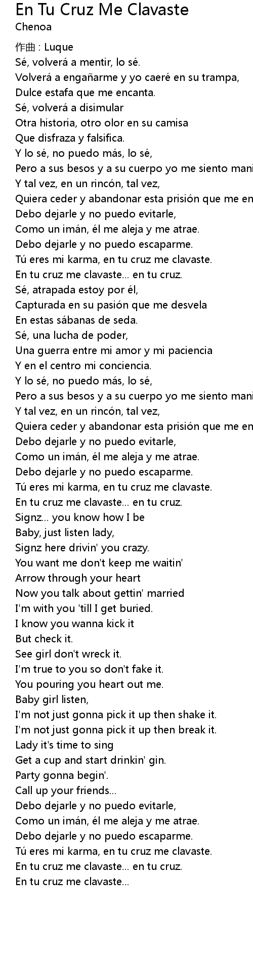 | Tú eres mi karma, en tu cruz me clavaste. | |