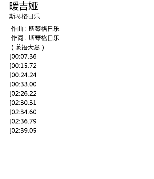 | [00:00.00] | 作曲 : 斯琴格日乐 |