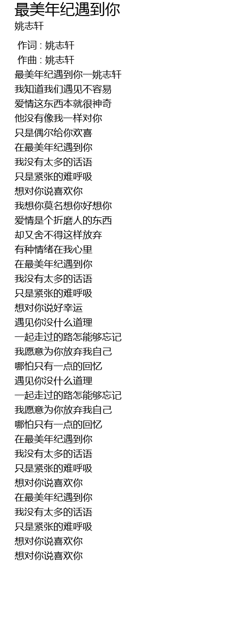 | [00:19.844] | 最美年纪遇到你一姚志轩 |