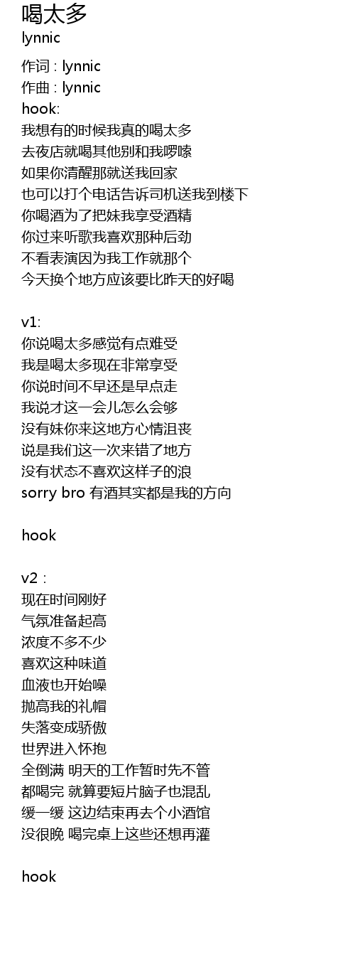 | Song | 喝太多 |