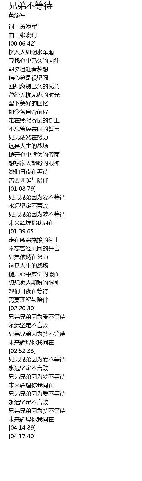 | [04:00.19] | 兄弟兄弟因为梦不等待 |
