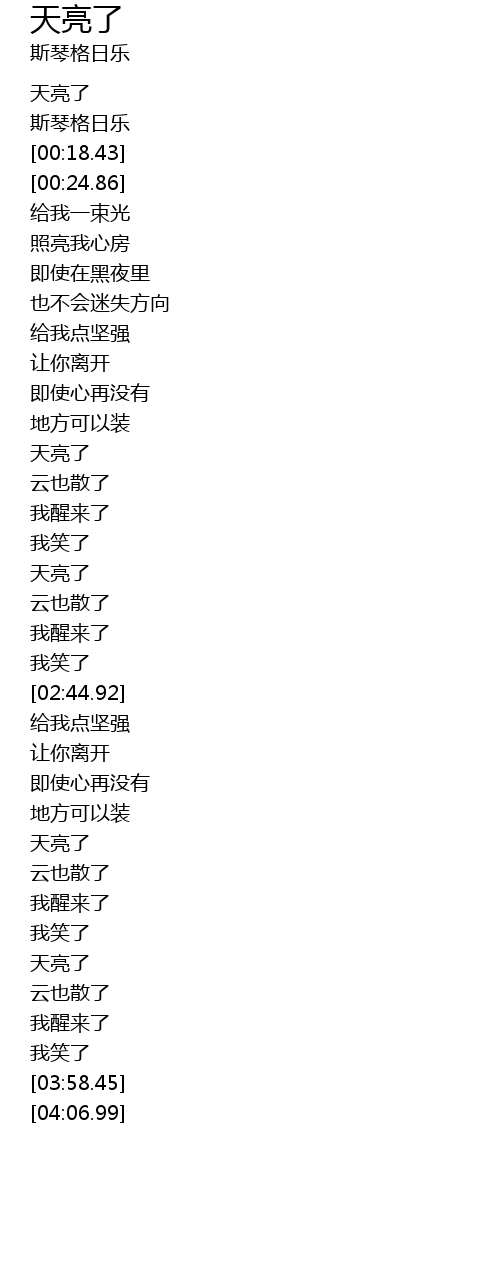 | [00:03.03] | 天亮了 |