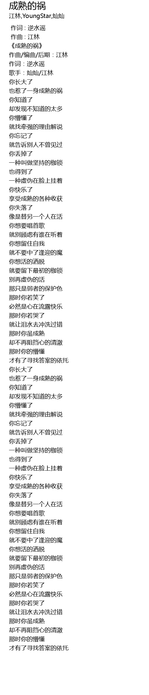 | [00:01.000] | 《成熟的祸》 |