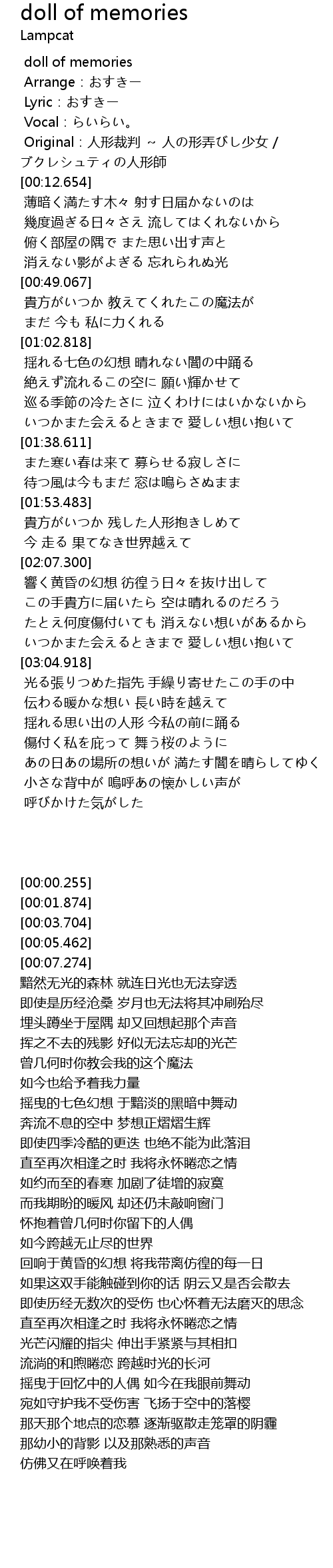 | [00:00.255] | doll of memories |