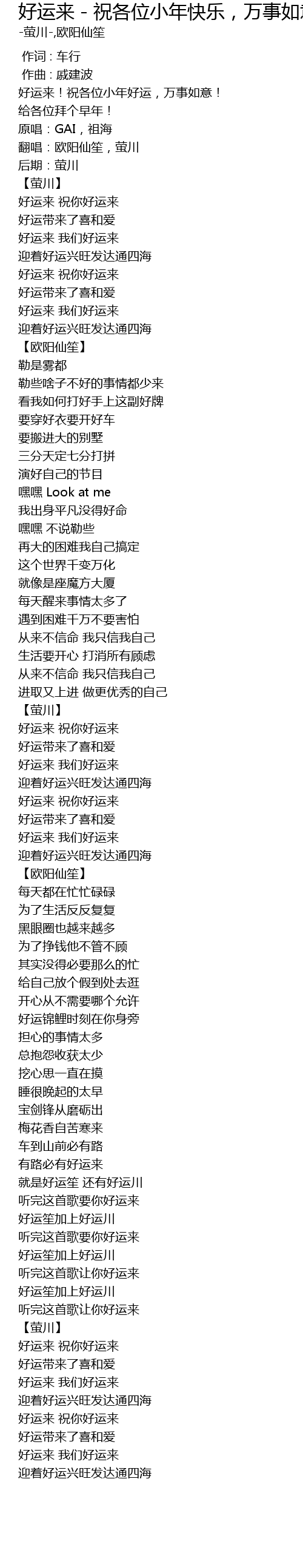 | [01:43.333] | 好运来 祝你好运来 |