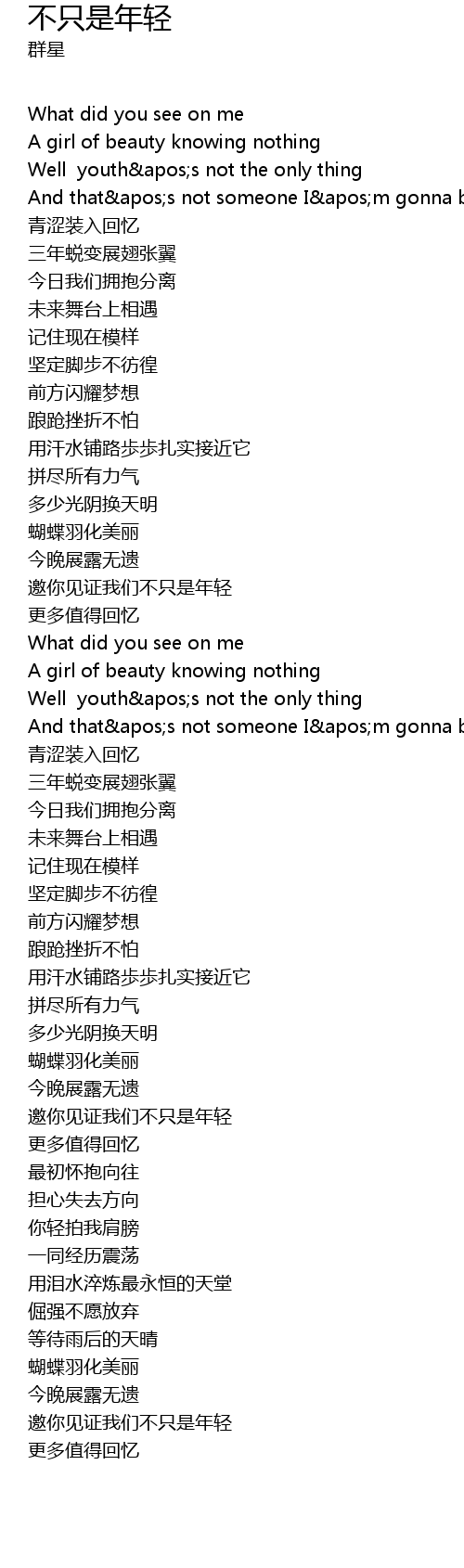 | yāo nǐ jiàn zhèng wǒ men bù zhǐ shì nián qīng | |
