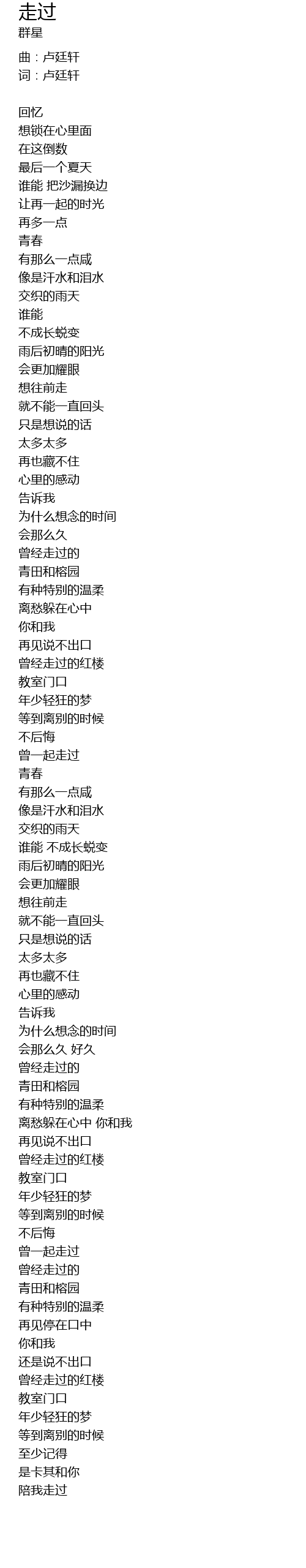| Song | 走过 |