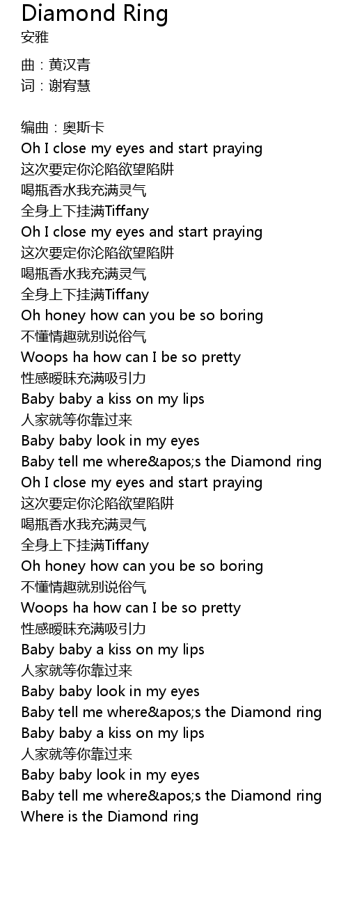 | Baby tell me where's the Diamond ring | |