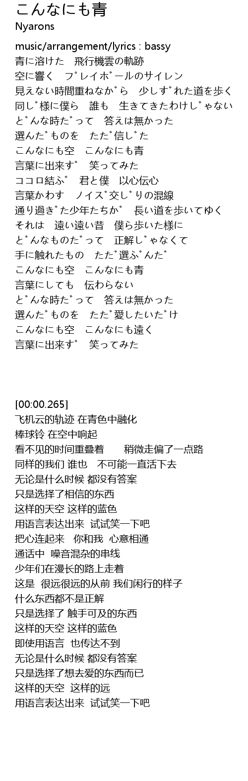 | [00:00.265] | music arrangement lyrics : bassy |