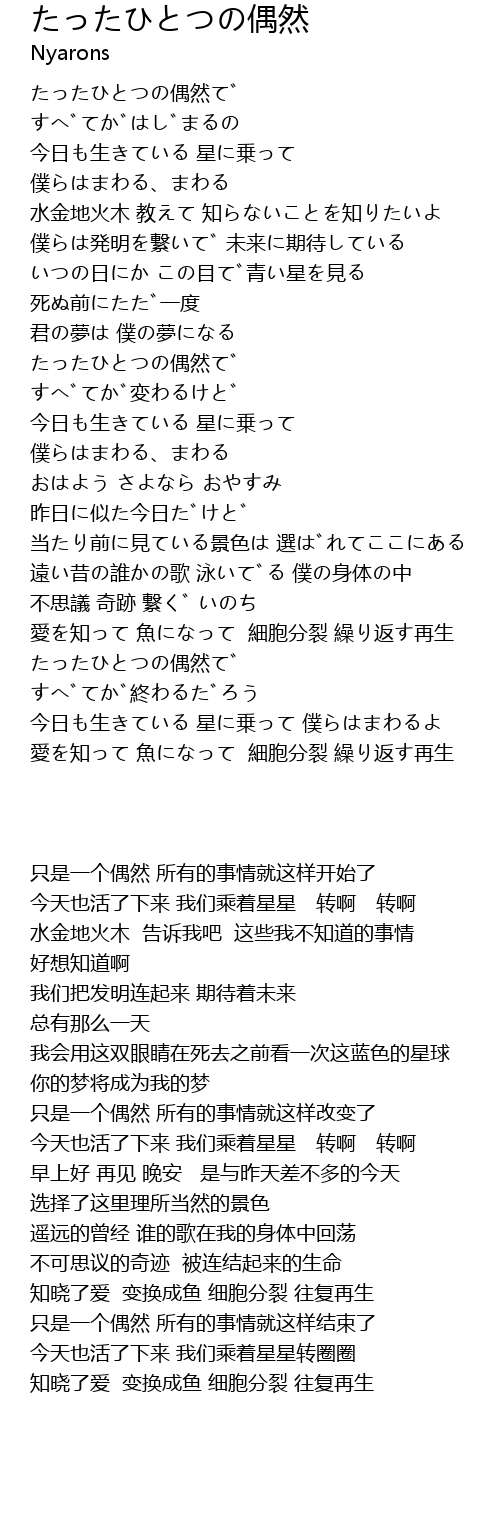 | [02:12.384] | 不思議 奇跡 繋ぐ いのち |