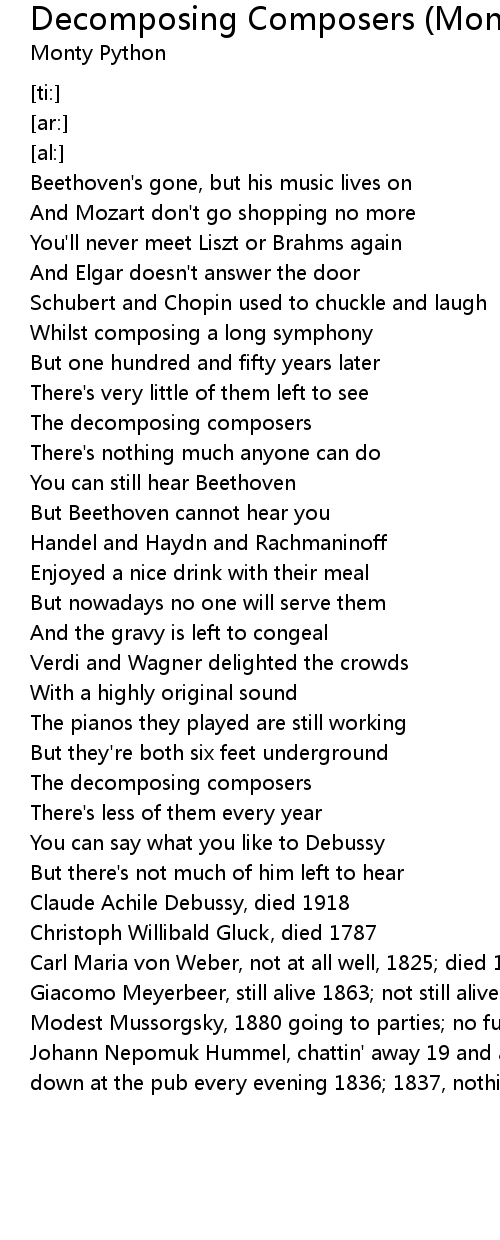 Carl Maria von Weber, not at all well, 1825; died 1826 |