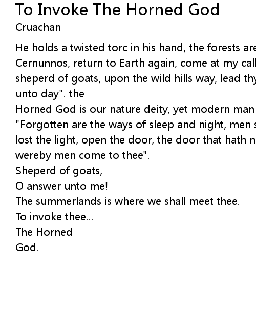 He holds a twisted torc in his hand, the forests are his ruling land. "Great god Cernunnos, return to Earth again, come at my call and show thyself to men, sheperd of goats, upon the wild hills way, lead thy lost flock from darkness unto day". the |