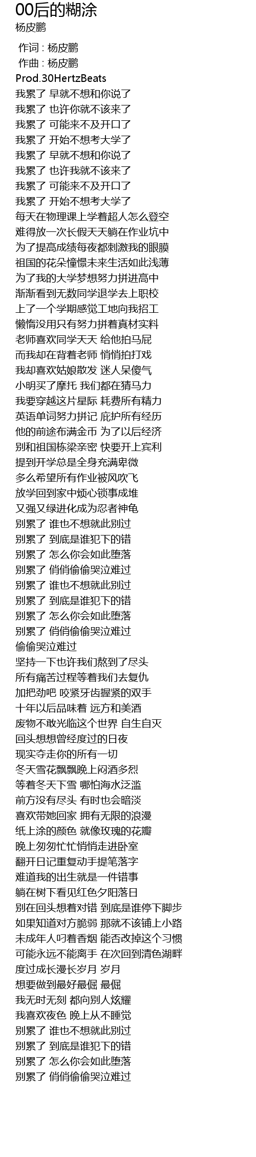 | [00:39.602] | wo lei le kai shi bu xiang kao da xue le |