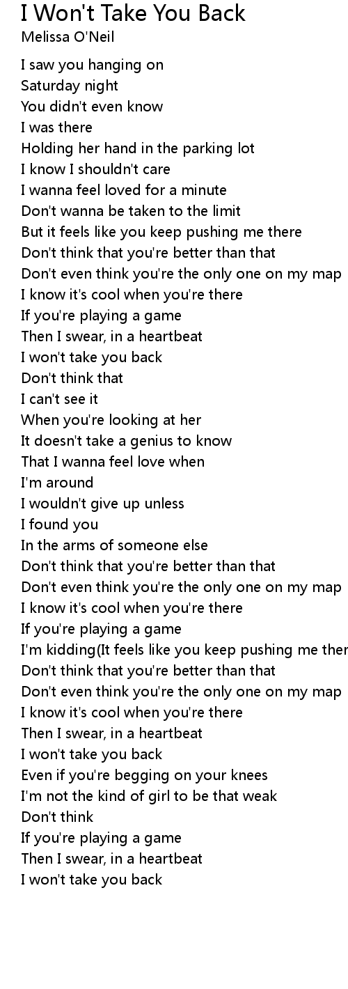 I Won't Take You Back Lyrics