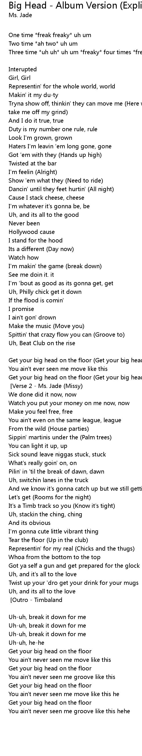 | [2x] [Verse 2 - Ms. Jade (Missy)] |