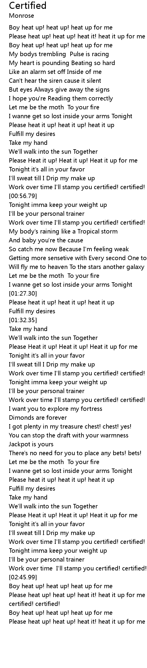 | [02:33.38] | Work over time I'll stamp you certified! certified! |