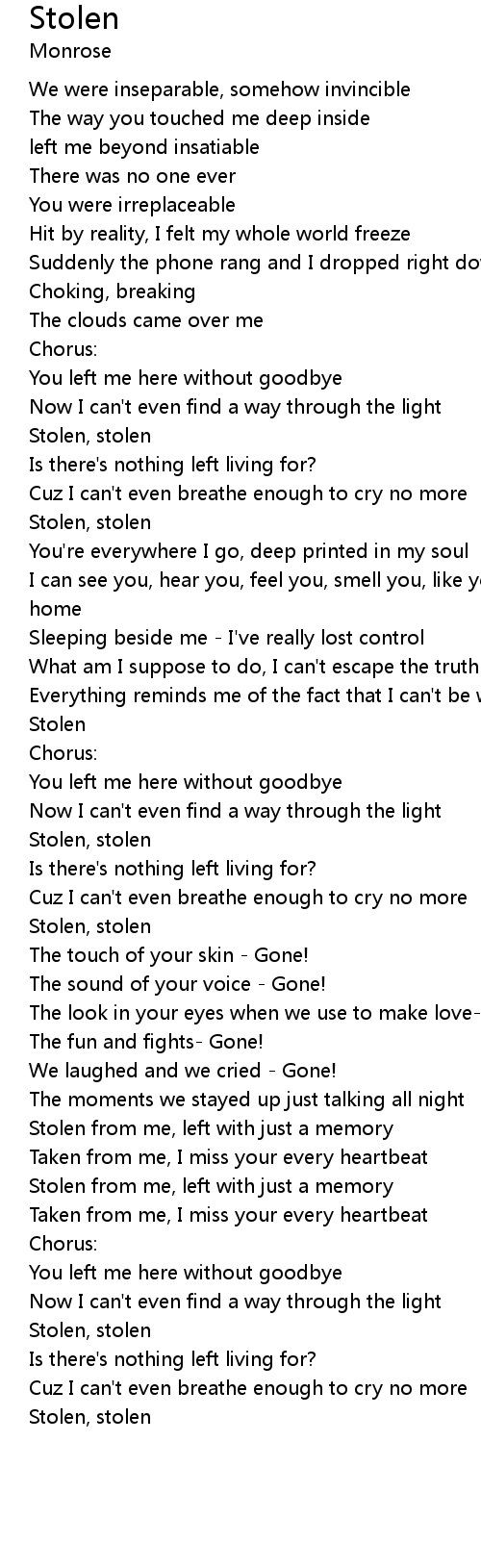 | [01:49.21] | Stolen, stolen |