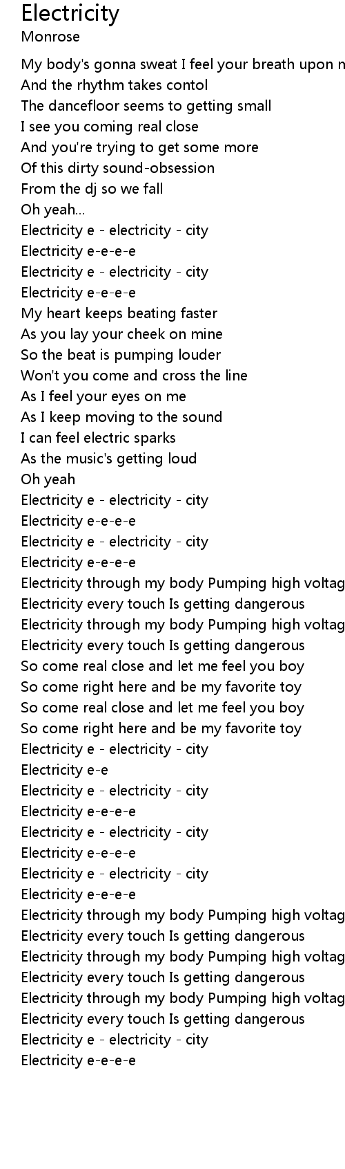 | [01:29.11] | Electricity every touch Is getting dangerous |