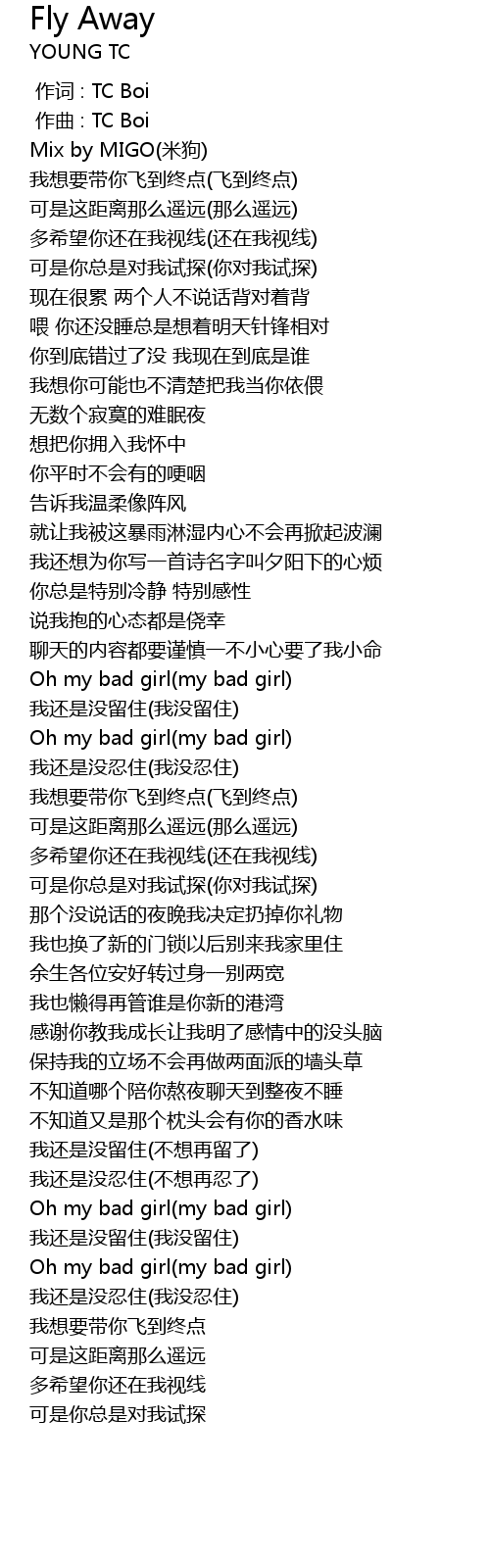 | [00:00.000] | 作词 : TC Boi |