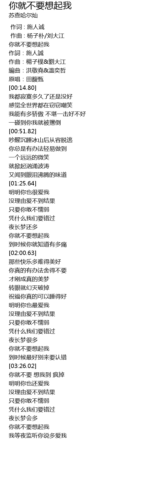 | [04:01.95] | nǐ jiù bú yào xiǎng qǐ wǒ |