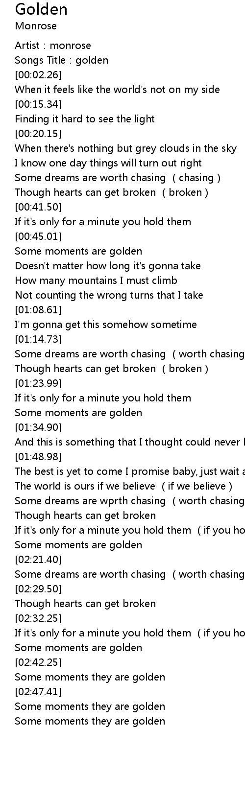 | [02:25.18] | Some dreams are worth chasing worth chasing |