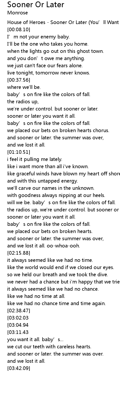 | [03:20.57][03:11.43][02:44.50] | and sooner or later sooner or later. |