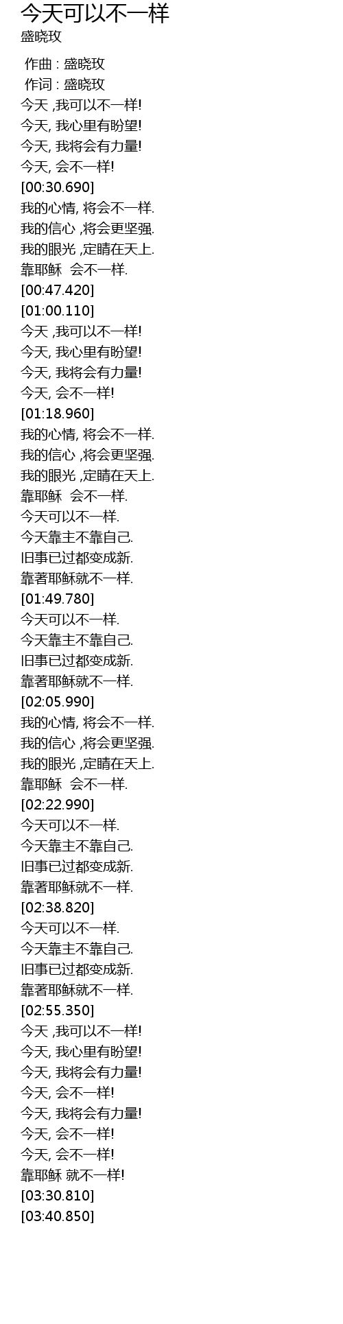 | [01:34.310] | jīn tiān kě yǐ bù yí yàng. |