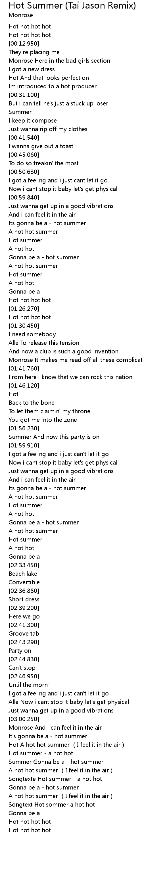 | [03:17.010] | Songtexte Hot summer a hot hot |