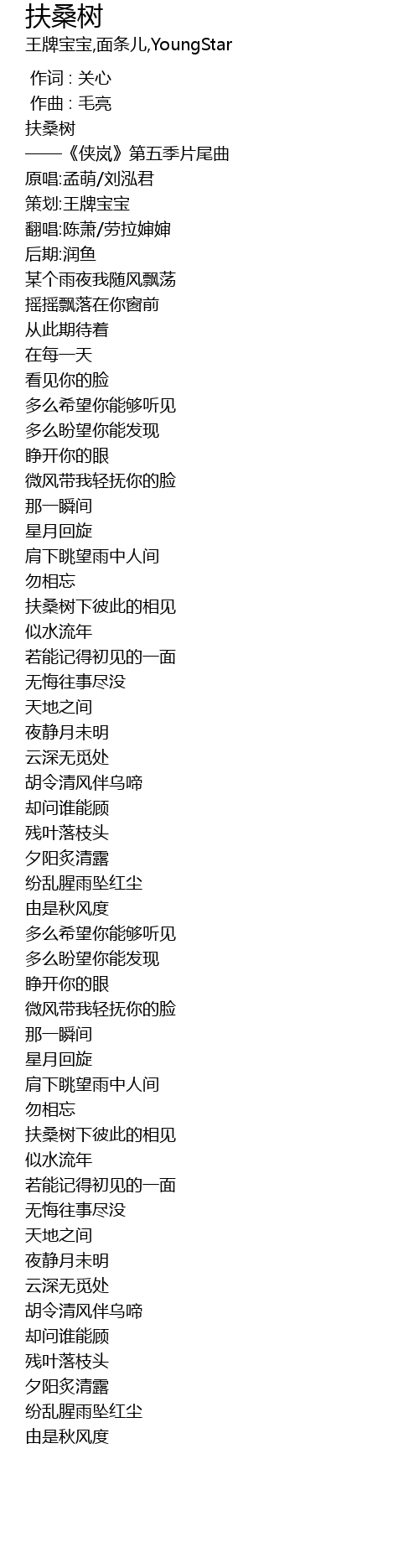 | [01:45.565] | fú sāng shù xià bǐ cǐ de xiāng jiàn |