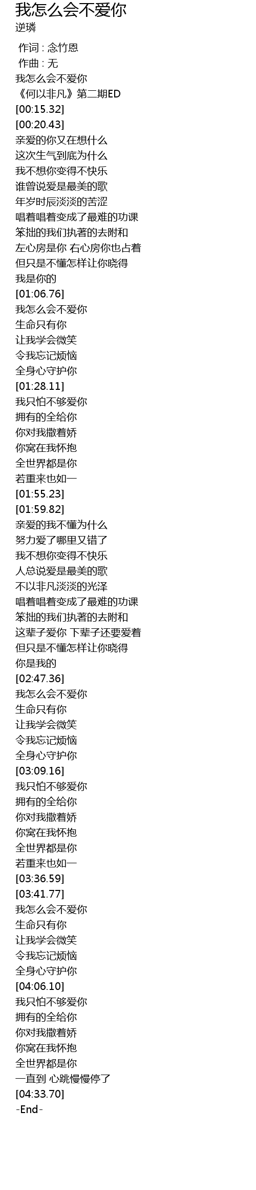 | [02:47.90] | wǒ zěn me huì bù ài nǐ |