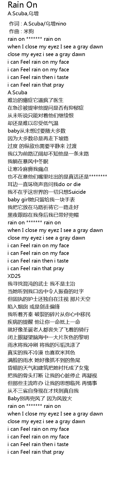 | [00:00.000] | 作词 : A.Scuba/乌增nino |