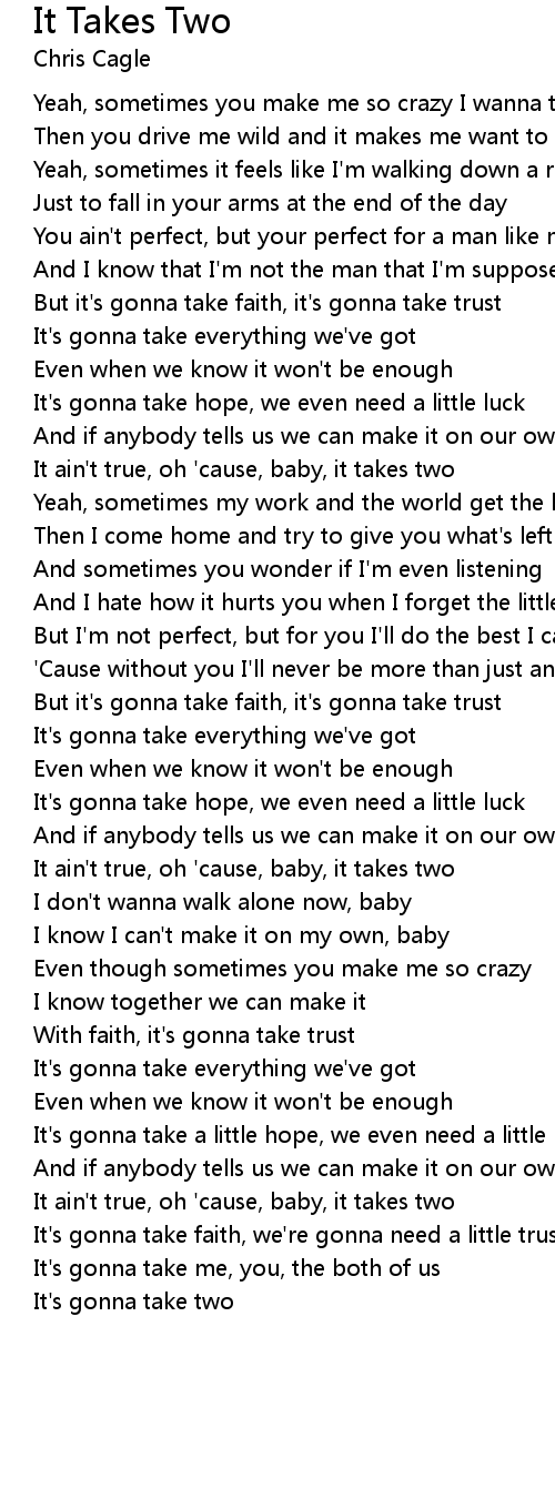 It ain't true, oh 'cause, baby, it takes two |