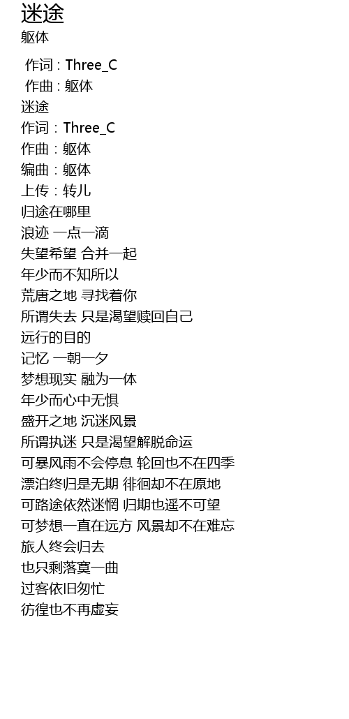 | [02:58.309] | 漂泊终归是无期 徘徊却不在原地 |
