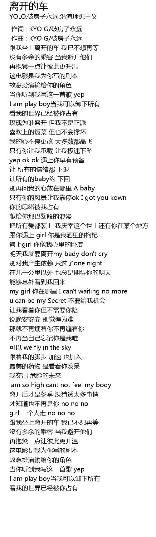 | [00:00.000] | 作词 : KYO G/破房子永远 |