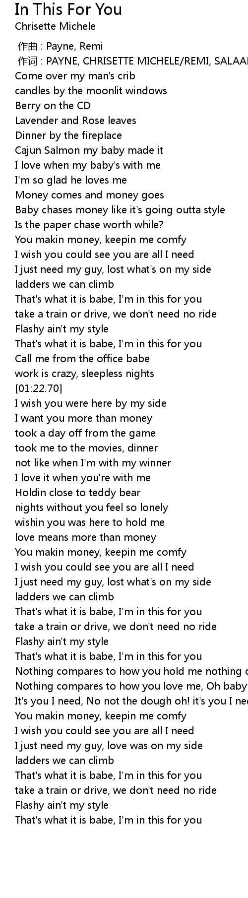 | [01:16.20] | That's what it is babe, I'm in this for you |