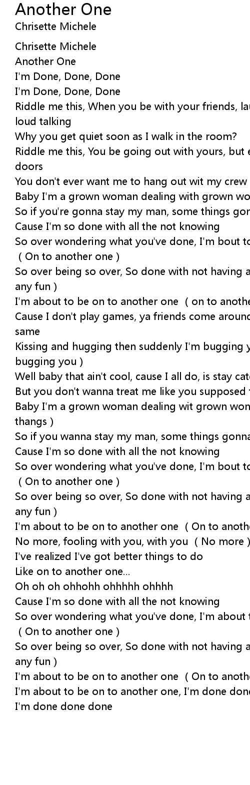 | [03:19.19] | I' m about to be on to another one, I' m done done done |