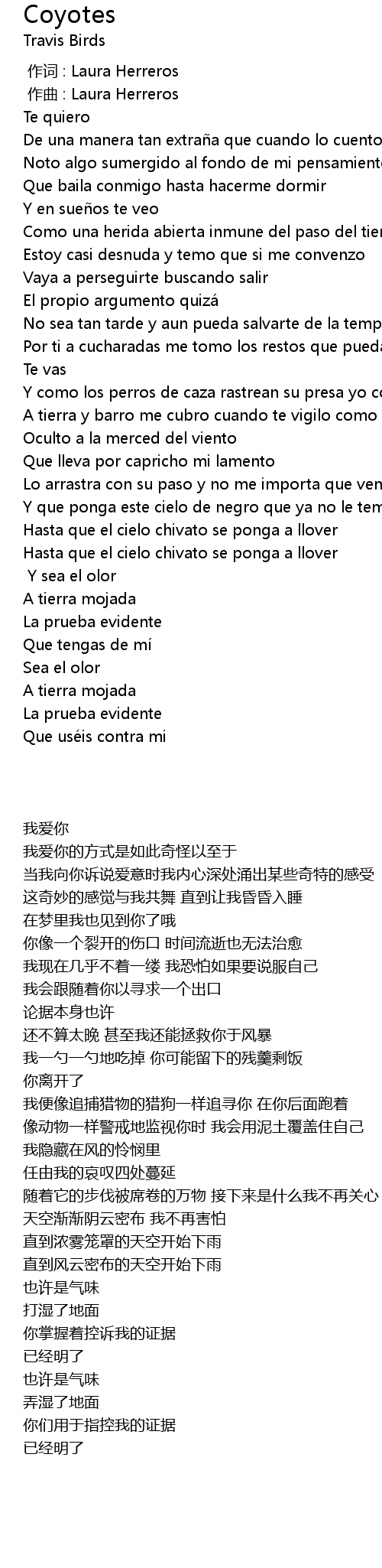 | [00:00.000] | 作词 : Laura Herreros |