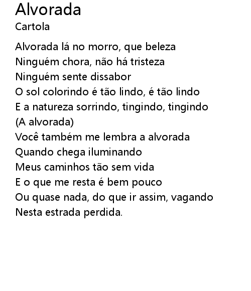 | Voc tambe m me lembra a alvorada | |