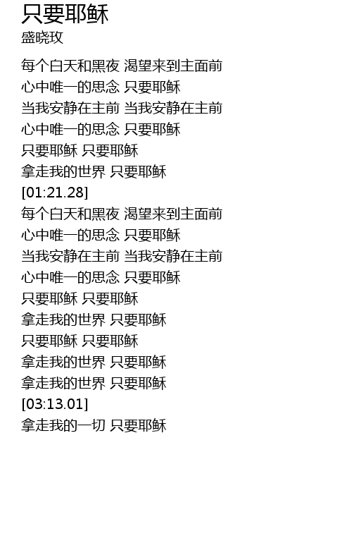 | [01:43.37] | 心中唯一的思念 只要耶稣 |